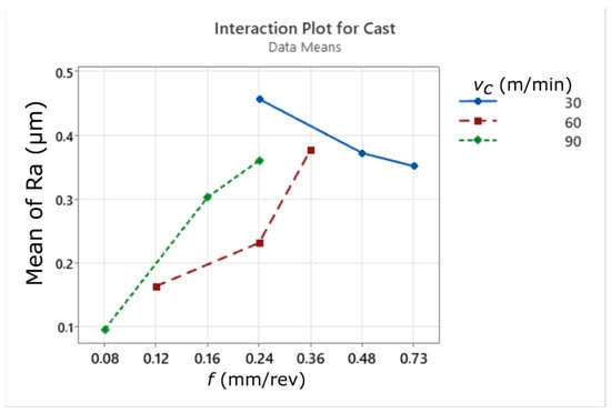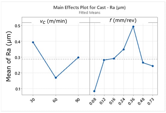 The influence of cutting speed and feed on the mean of Ra—cast AISI 316L.