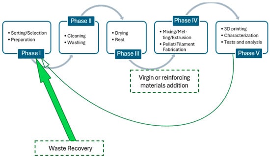 Oliveira et al. [79] recommended further research focused on optimizing the printing orientation for improved results and to mitigate its impact on mechanical performance. Scanlon et al. [80] concluded that mixing and melting for recycling polymers before the extrusion process could improve issues related to low intrinsic viscosity. Furthermore, to address challenges and accelerate the adoption of recycled polymers in 3D printing, it is essential to consider better traceability of recycled polymers throughout the supply chain and further develop new applications for 3D-printed products made from recycled polymers.