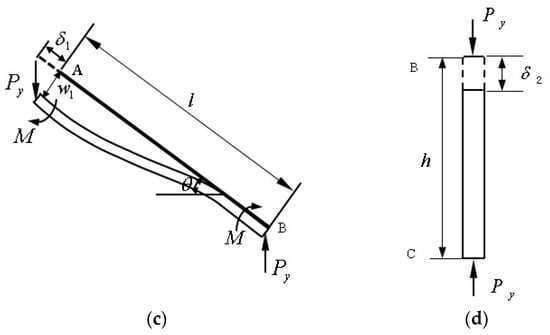 ε c y = Δ l l = w 1 cos θ + δ 1 sin θ + δ 2 h + l sin θ = P y l 3 ( cos 2 θ + t 2 l 2 sin 2 θ + t 2 l 3 h ) E S b t 3 ( h + l sin θ )