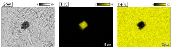 - Observations of the specimen microstructure etched with the Nital reagent using a light microscope (LM) (Zeiss Axio Observer.Z1m, Manufacturer: Carl Zeiss Microscopy GmbH, Jena, Germany) and microstructure investigations were carried out using a high-resolution scanning electron microscope, Zeiss Supra 35 (Zeiss Supra 35, Manufacture: Carl Zeiss NTS GmbH, Oberkochen, Germany) with an accelerating voltage of 20 kV and magnifications of 70–15,000×. A secondary electron detector SE and backscatter electron detector BSE were used for the study. Analyses of chemical composition in micro-areas were performed using the EDX detector (Thermo Scientific™, EDX detector: Thermo Fisher Scientific, Waltham, MA, USA) with Pathfinder software (thermofisher.com) (EDX detector: Thermo Fisher Scientific, Waltham, MA, USA). This stage was performed at the EBSD camera (Orientation Imaging Microscopy v5 Analysis software version 5.31) and OIM Analysis software from EDAX;