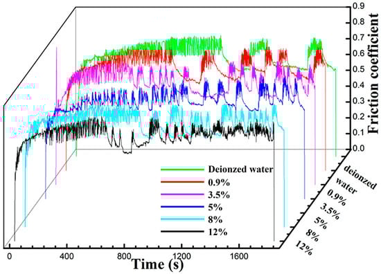 The variation curves of the friction coefficient with time in solutions of different Cl− concentrations.