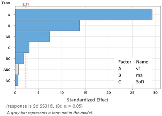 Figure 13. Pareto chart of the standardized effect (SD SS 316L A).