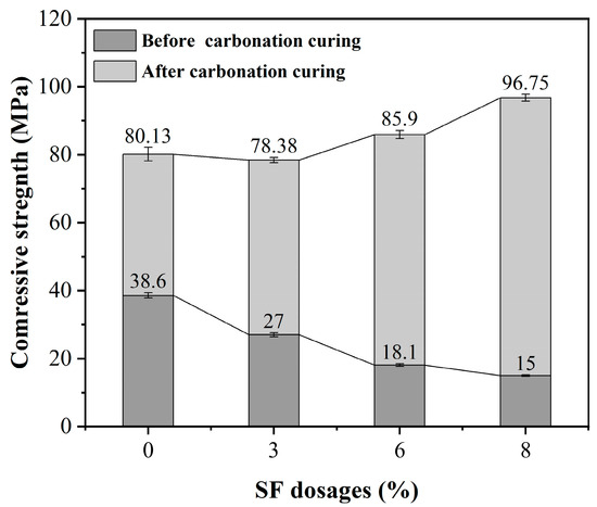 Effect of different SF dosages on the compressive strength of HCPC before and after carbonation curing.