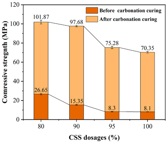 Effect of different CSS dosages on the compressive strength of HCPC before and after carbonation curing.