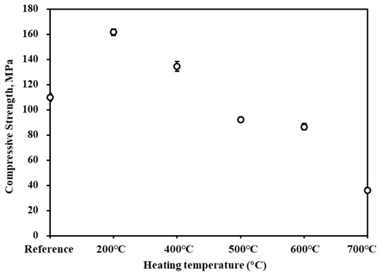 Compressive strength of HCPC after different temperature treatments.