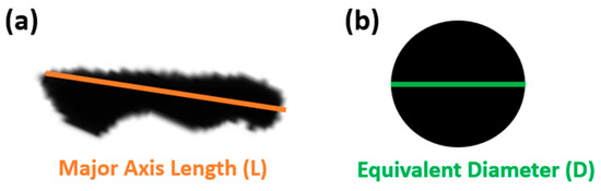 (a) The particle’s shape. (b) The circle which shares an equivalent area with the particle’s shape.