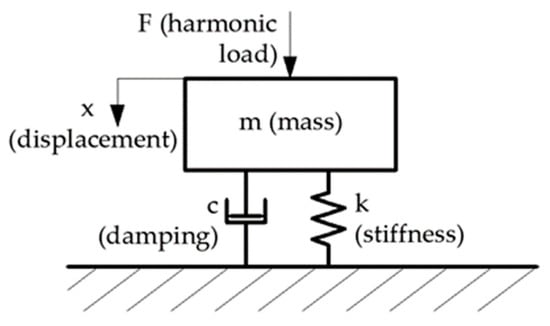 Physical model of the mass–damper–spring system with single degree of freedom (SDOF).