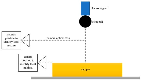 A high-speed camera was used to record the position of the ball. In order to identify local maxima, the optical axis of the camera lens was set halfway between the starting (drop) point and the upper surface of the sample. To record local minima, the optical axis of the camera lens was set in the plane of the upper surface of the sample.