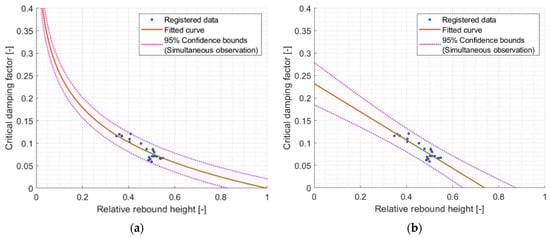 As in the case of relative indentation, various models were tested for the relationship between the critical damping factor and the relative rebound. Yet again, it was noticed that the linear function gives the highest R2 for the recorded measurements. The results of this correlation for the subsequent relative rebound are presented in Table 7.
