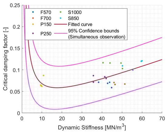 In this paper, measurements were made using a dynamic stiffness testing machine [,], which determined the dynamic stiffness of the material and the critical damping fraction.
