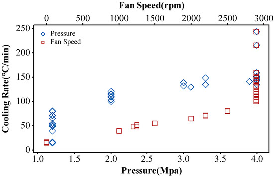 The relationship between cooling rate and pressure as well as fan speed in a vacuum furnace.