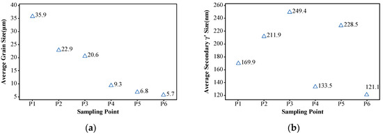 Statistics of the microstructure in dual-performance turbine disk: (a) the average grain size; (b) the secondary γ′ size.