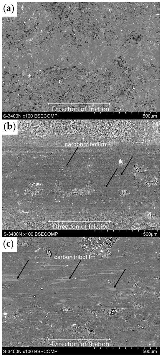 - the addition of graphite at 10, 20, 30% by weight leads to a reduction in the friction coefficient by approximately 40–45% and a reduction in abrasive wear, which results from the effective formation of transfer film on the material;