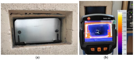 After the temperatures were equalized, or after the heat exchange between the furnace space, the steel strip and the furnace walls was completed, their temperature began to slowly decrease. When the temperature of the steel strip reached a value close to 100 °C, the furnace door was opened, and thermal images of the steel strip were taken with a thermal imaging camera; at the same time, the humidity and ambient temperature were recorded. The thermal imaging camera was placed on a tripod at a distance of 32 cm from the polished steel strip.