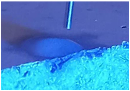 Illustrative image of the ultrapure water droplet on the surface of the cementitious composite and its absorption into the upper layer of the sample.