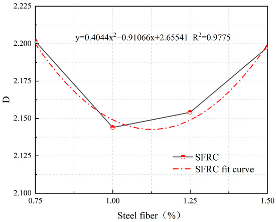 These results indicate that steel fibers effectively bridge macro-cracks in the concrete, restrict crack propagation, enhance the ductility of the concrete material, and improve the . However, it is important to note that more steel fibers are not necessarily better. When the exceeds 1.0%, the clustering of the steel fibers may occur within the concrete, leading to a reduction in the strength and ductility of the concrete.