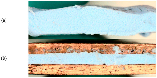The final results of the contact resistance, determined as 0.1 (cm2·K)/W and 0.17 (cm2·K)/W, were compared to the typical TIM known on the market. A value of 0.39 (cm2·K)/W was presented in the technical data sheet for gap filler [38]. For thermal pads [39,40,41], the contact resistance is higher and is in the range of 1.68–9.7 (cm2·K)/W.