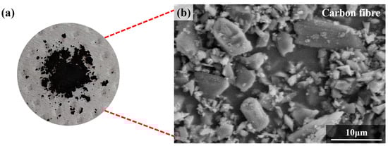 Carbon fiber powder: (a) Macroscopic image and (b) SEM micrograph.