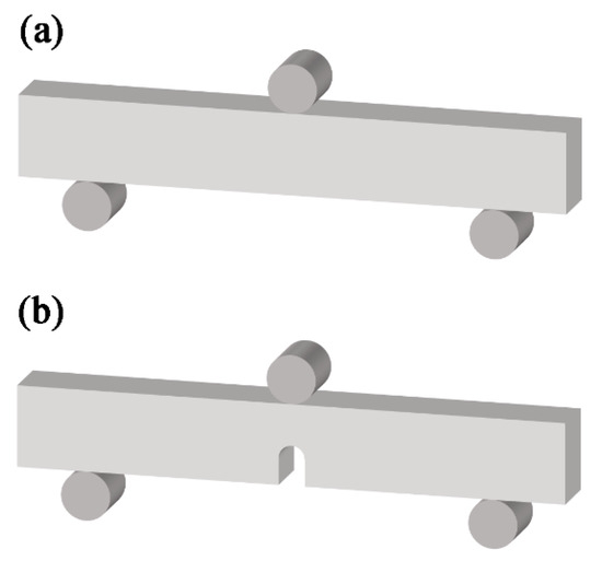 Schematic diagram of the test for three-point single-edge notched bend (a) and unnotched bend (b).