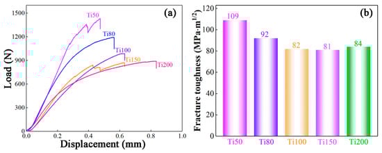 The load–displacement curves (a) and the fracture toughness (b) of the multilayered BMGCs with different thickness of Ti layers under three-point single-edge notched bending conditions.