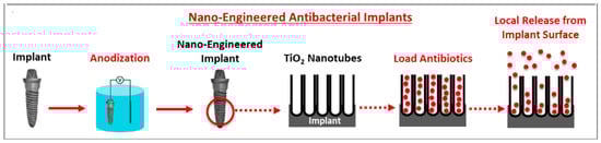 Schematic representation of therapeutic application of titania nanotubes in dental implantology. Source: Reprinted with permission from Ref. [65].