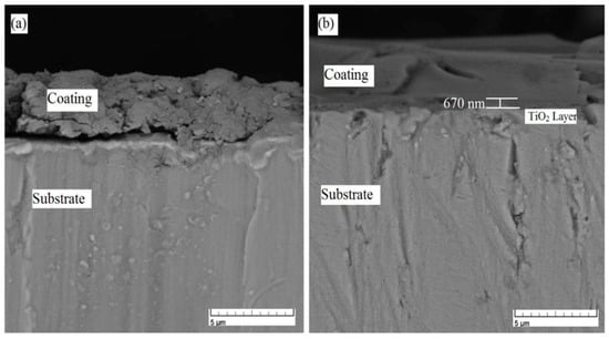 Cross-sectional SEM images of (a) HA and (b) functionally graded HA-TiO2 coatings. Source: Reprinted with permission from Ref. [87].
