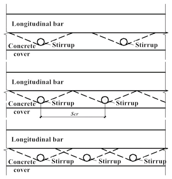 As shown in Figure 13, the concrete outside the constraint range Scr can be considered to have no stirrup internally, and its corrosion-induced expansion characteristics are the same as those of the member without a stirrup.