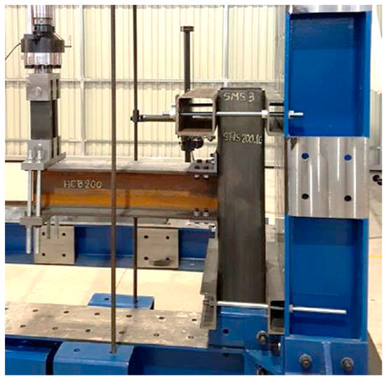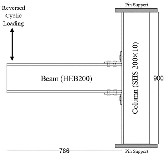 Test set-up of the beam-column connection. Reprinted from [33], with permission from Elsevier.