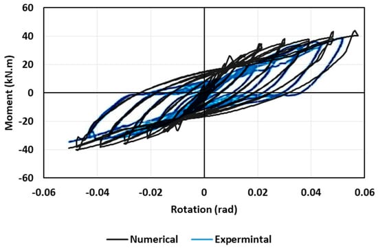 Comparison between the numerical results of the current study and the experimental values of the tested connection.