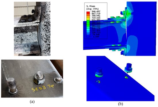Tensile failure in the welded bolts (a) Serrano-López et al. Reprinted from [33], with permission from Elsevier. (b) Current study.
