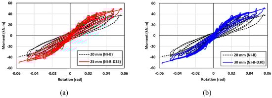 Effect of SMA bolt diameter on the hysteresis response (a) 20 mm vs. 25 mm; (b) 20 mm vs. 30 mm.