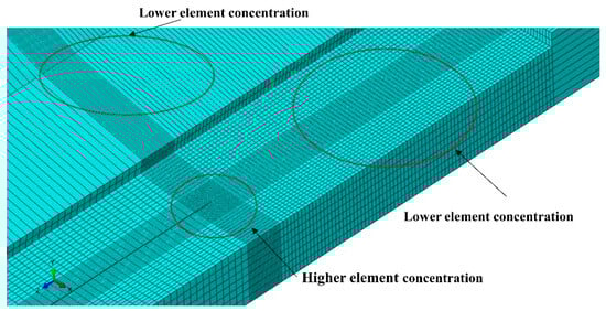 The model is built using C3D8R elements. Figure 7 shows the meshing method of the corroded pipeline model. The crack tip within the corrosion region was meshed with higher density as a key location for analysis. Hexahedral elements are used to divide the soil mass and the pipeline. The mesh of the contact part between the soil mass and the outer surface of the pipeline is encrypted, and the crack tip part is encrypted with a 10 mm square area. The mesh element is encrypted along the wall thickness direction on the pipeline. The minimum unit size of the pipe mesh at the crack tip was set as 0.5 × 0.5 × 0.5 mm3, and the incremental size of 0.5 mm was used to calculate the crack propagation length. Fewer grid cells are used at other locations in the pipeline in order to reduce calculation time. This approach also ensures calculation accuracy in the target area.
