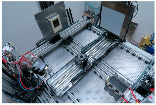 Samples were scanned in an in-house developed experimental tomograph, TORATOM [], depicted in Figure 1.