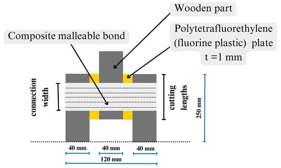 A two-cut sample for determining the mechanical characteristics of the mechanical malleable bonds for connecting built-up timber elements (own elaboration figure).