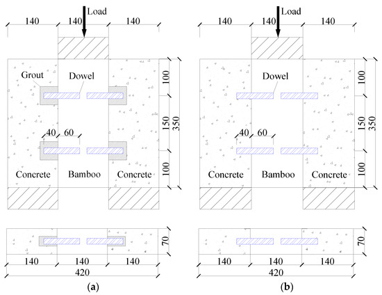 - Wei, Y.; Ji, X.; Zhou, M.; Zhao, L.; Duan, M. Mechanical properties of bamboo-concrete composite structures with dowel-type connections. Trans. Chin. Soc. Agr. Eng. 2017, 33, 65–72. [Google Scholar]