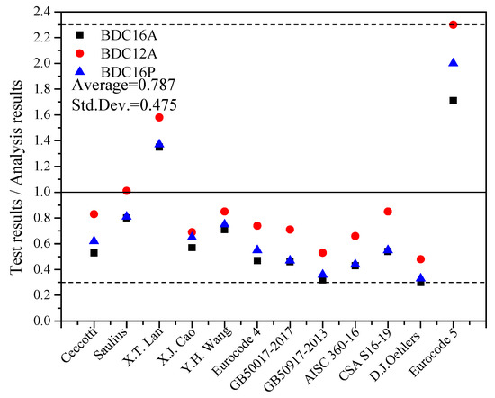 | Specimen ID | Measured | Ceccotti [21] | Saulius [22] | Lan [23] | Cao [24] | Wang [25] | Eurocode 4 [26] | GB 50017-2017 [27] | GB50917-2013 [28] | AISC 360-16 [29] | CSA S16-19 [30] | Oehlers [31] | Eurocode 5 [32] |
