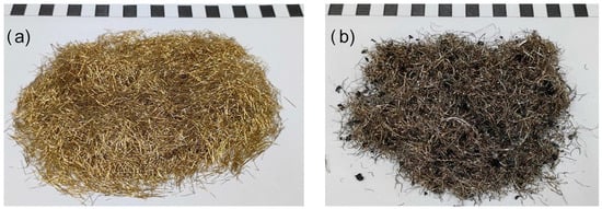 Steel fibers used in the experiment: (a) factory made steel fiber and (b) WTSF.
