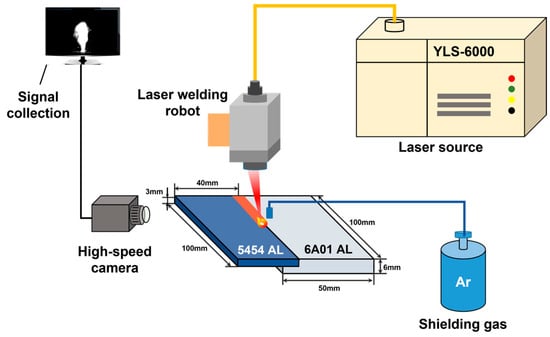 Aluminum alloy (6A01) is increasingly applied in Chinese High-Speed Railway (CHR) trains due to its properties of light weight, high specific strength, and corrosion resistance [1,2]. The roofs and side walls of trains are made of aluminum profiles and connected in the form of butt–lap joints. The laser welding of aluminum alloys has attracted particular attention because of its low heat input and large weld depth, with the ability to achieve deep penetration in butt–lap joints [3]. However, keyhole-induced pore defects easily form during the laser welding process, reducing the tensile strength of the joints and the safety of CHR trains [4,5]. Therefore, the detection of pore defects is a necessary procedure in train manufacturing. However, the post-welding inspection methods, such as X-ray detection, are time-consuming and expensive. It is necessary to investigate an efficient and reliable method to monitor keyhole-induced pore defects.