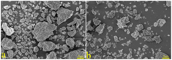 Particle-size distribution diagrams of coal gangue (a) calcined samples and (b) leaching residues.
