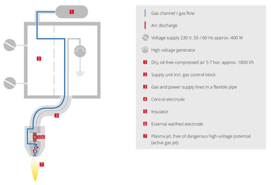 Scheme for the atmospheric pressure plasma system, as developed by Diner Electronics [].