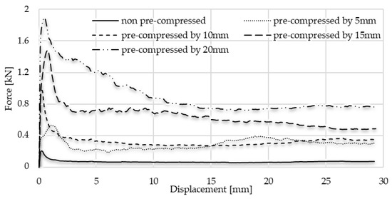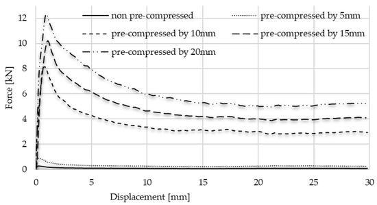 Friction graphs of each pre-compressed specimen pushed away inside the tube.
