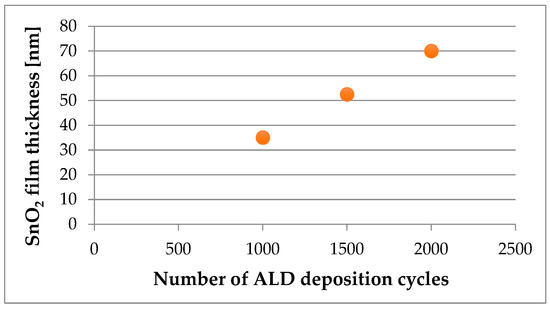 Relationship between SnO2 film thickness and the number of ALD deposition cycles.