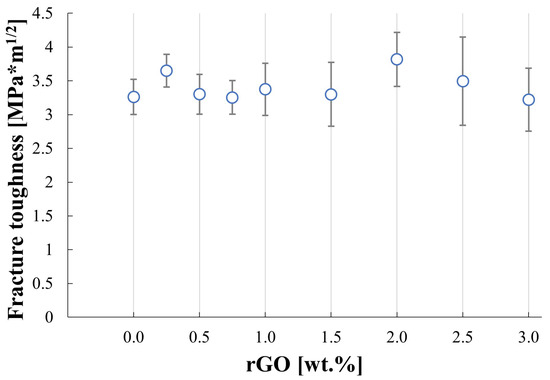 One of the biggest flaws of ceramics, and SiC is not an exception, is low fracture toughness. Strong covalent bonds of silicon carbide contribute to the brittleness of this material. The most effective way to minimize this disadvantageous property is to add a reinforcing phase. In the previous article, the authors examined the effect of the addition of reduced graphene oxide (rGO) to a silicon carbide matrix on thermal and electrical properties [13]. It was observed that rGO has a significant impact on those properties. Since there is a scarcity of scientific publications on the mechanical properties of SiC–rGO composites, the authors decided to contribute to this specific field of materials science. In this study, the influence of rGO content on hardness and fracture toughness was measured. Additionally, the 3-point bending tests for produced composites were performed. As of today, in the Scopus database, there are only a few publications containing measurements of the bending strength of SiC–rGO composites.