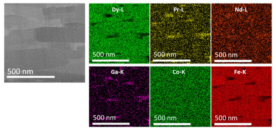 - Sepehri-Amin, H.; Liu, J.; Ohkubo, T.; Hioki, K.; Hattori, A.; Hono, K. Enhancement of Coercivity of Hot-Deformed Nd-Fe-B Anisotropic Magnet by Low-Temperature Grain Boundary Diffusion of Nd60Dy 20Cu20 Eutectic Alloy. Scr. Mater. 2013, 69, 647–650. [Google Scholar] [CrossRef]