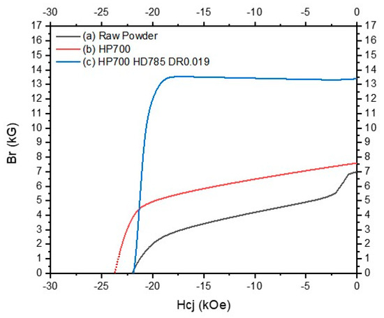 - Wang, F.; Chen, K.; Du, J.; Zhang, J. Simultaneous Increase in Remanence and Coercivity during Grain Refining of Nd-Fe-B Deformed Magnets. J. Rare Earths 2021, 40, 1763–1771. [Google Scholar] [CrossRef]