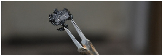 The selection of low-carbon steel type A333 Grade 6 (Liaocheng Huililai Import and Export Co., Ltd., Liaocheng, China) for this study was motivated by its appropriateness for low-temperature applications, as it maintains impact toughness even at temperatures as low as −45 °C. Furthermore, niobium metal powder was chosen to enhance the low-carbon steel. The fabrication of Fe-C-Nb encompassed multiple stages, involving the preparation of low-carbon steel samples, niobium powder preparation, the melting procedure, and lost-foam casting. Initially, A333 Grade 6 steel was measured and cut into four segments, each with a length of 8 cm, to facilitate the melting process. These steel samples were weighed, and the measurements were meticulously recorded. Subsequently, three distinct amounts of niobium metal powder were accurately weighed and stored in sealed bags. The calculation of the niobium metal powder weight was determined in accordance with Equation (1) [24].