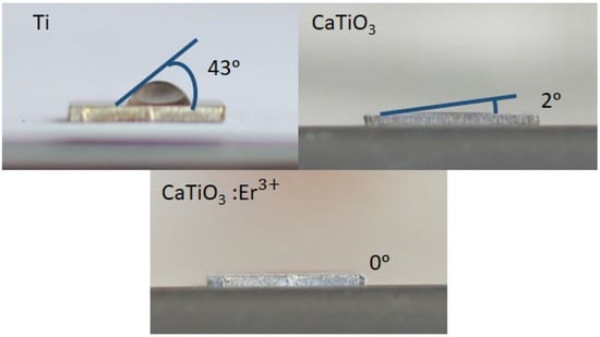 Contact angles of Ti substrate, CaTiO3, and CaTiO3: Er3+ films.