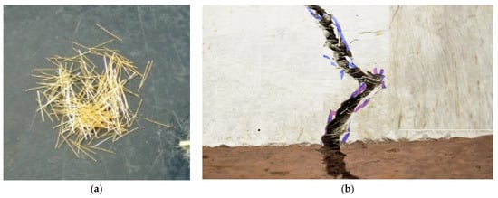 An illustration of the fibers used in the UHPFRC and typical bridge cracking of the fibers in the UHPFRC elements are presented in Figure 3a,b.