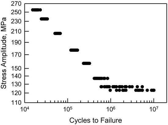 In experimental work, the overriding issue is the number of tests required to adequately characterize the property being investigated. One of the best and most complete professional guidelines for material properties that indicates the acceptable sample size for a qualified experimental program is MMPDS [23], which is a scientifically developed procedure for metallic materials to assess experimental and design data so that they are acceptable for certification. MMPDS is a joint effort of government agencies and industrial, educational, and international aerospace organizations. Specifically, chapter 9 is related to statistical analysis. In Section 9.9.1.1, the comment is made that for fatigue experimentation subjected to load-controlled conditions, each load should include at least six observations to failure. While this is a good rule of thumb, it may not be sufficient to fully characterize the scatter for a given load condition.