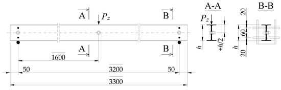 6], were composed of two channels (2 × C) placed back-to-back and fastened with bolts. A concentrated force load applied at the level of the upper flange at the centre of the span of the beam has been considered.